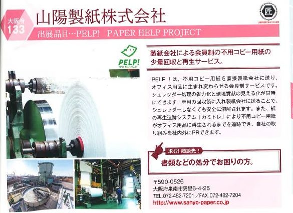 書類などのコピー用紙の処分でお困りの方、リサイクル用紙に興味のある方、是非、山陽製紙のブースへお越しください!