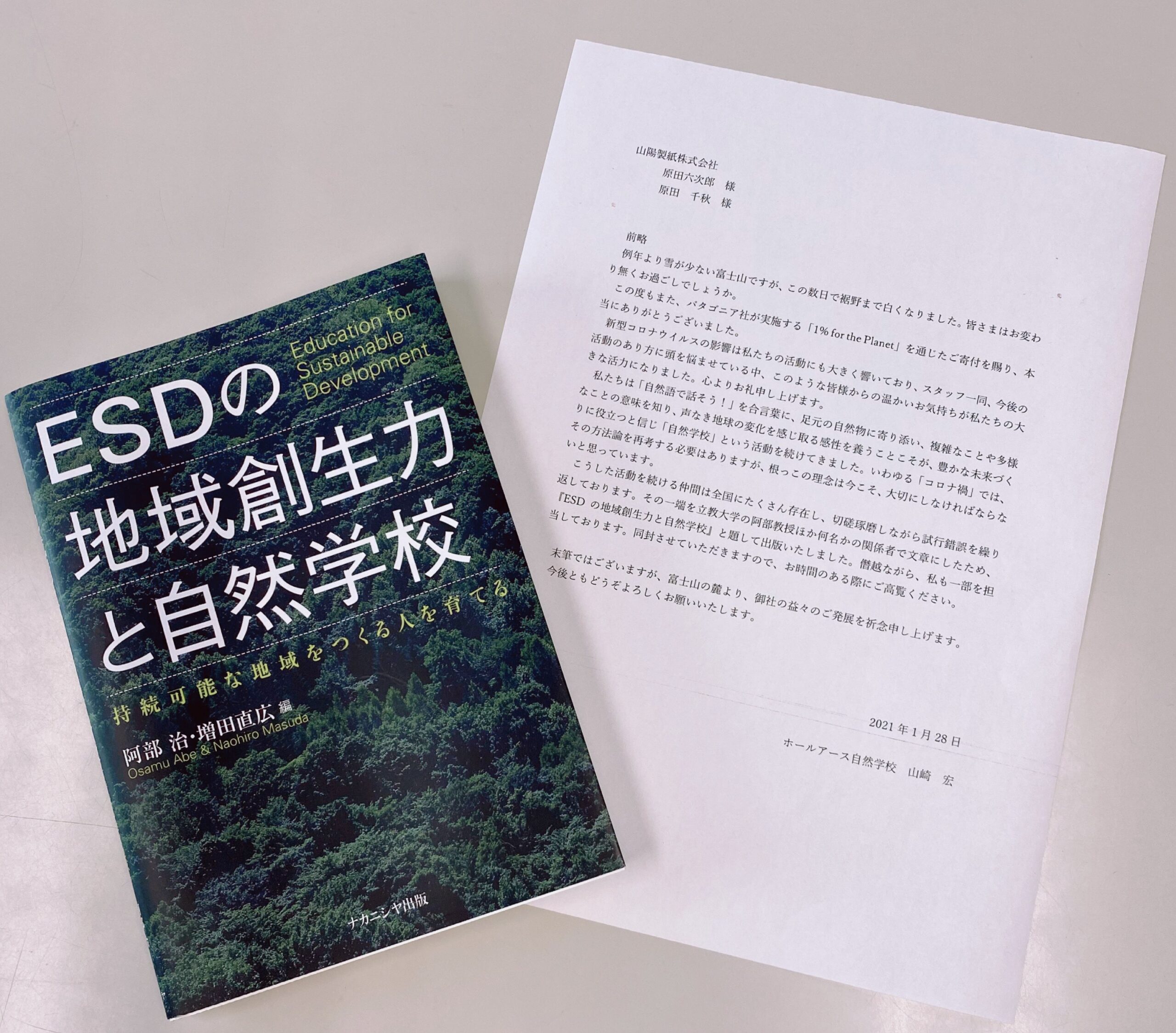 「1%for the Planet」の寄付先であるホールアース自然学校から御礼のお手紙が届きましたので、PELP会員の皆様にご紹介いたします。