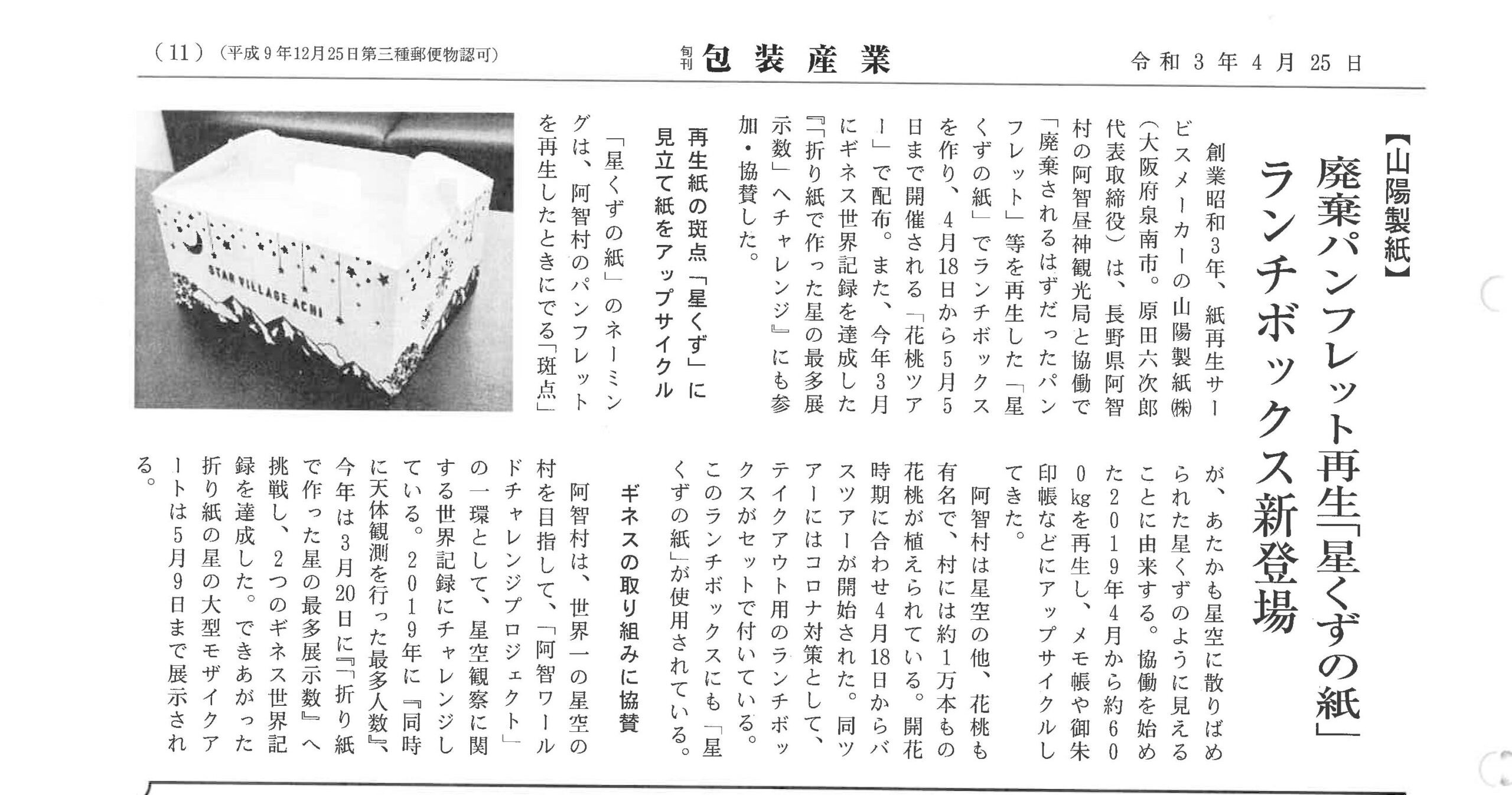 阿智村は星空の他、花桃も有名で、村には約1万本もの花桃が植えられている。開花時期に合わせ4月18日からバスツアーが開始された。同バスツアーにはコロナ対策として、テイクアウト用のランチボックスが付いている。このランチボックスにも「星くずの紙」が使用されている。